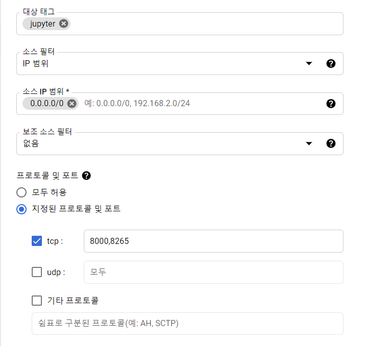 이렇게까지 구성해였을 경우, VM 인스턴스의 외부IP:8000 주소로 주피터 노트북 환경에 접속이 가능하게 됩니다.