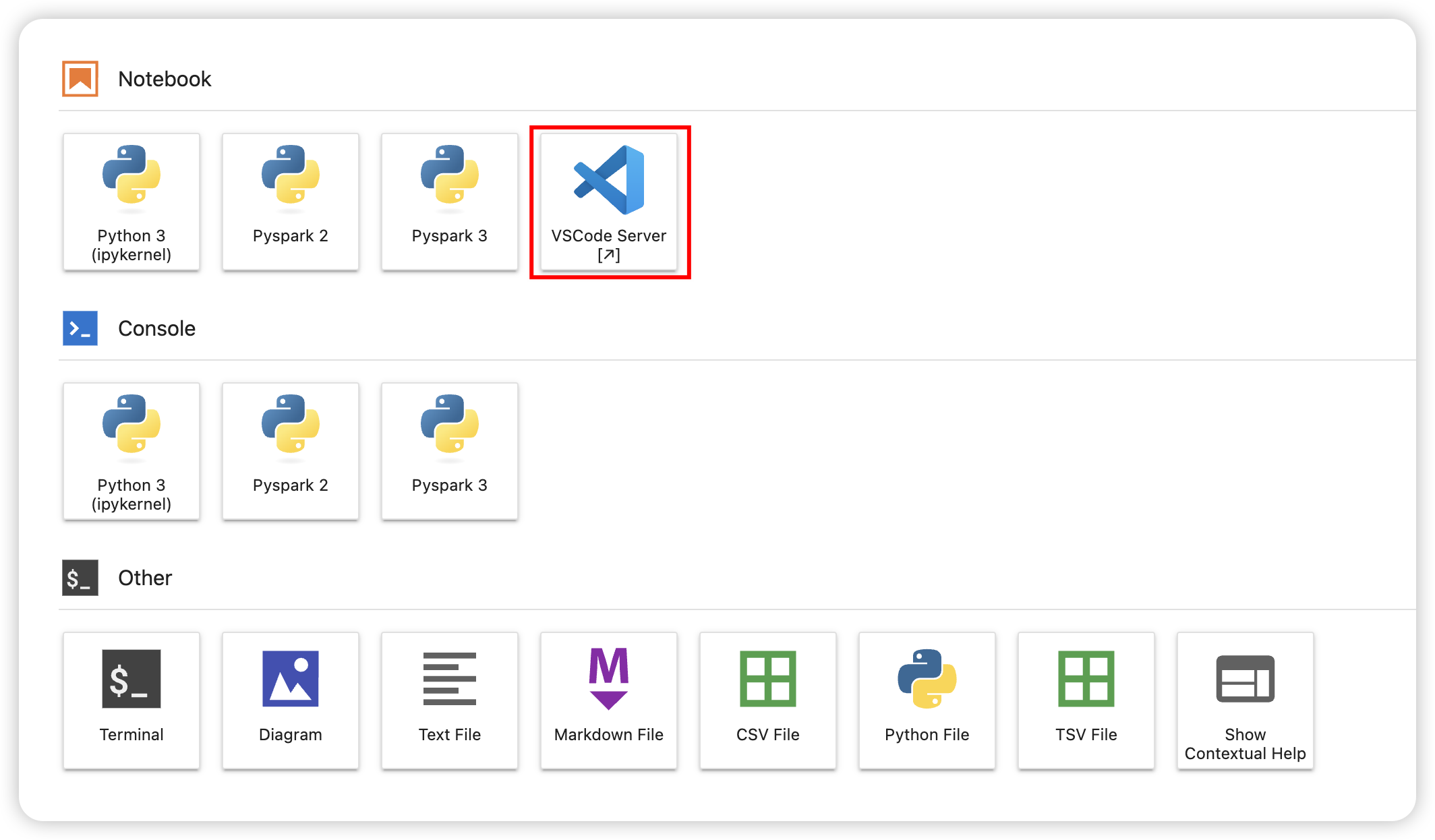 jupyterlab의 메인 페이지에 code-server 실행 아이콘을 만들어두고, 클릭하면 vscode로 진입할 수 있도록 만들려고 한다.